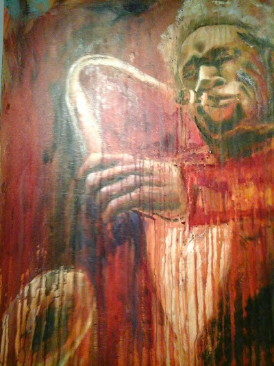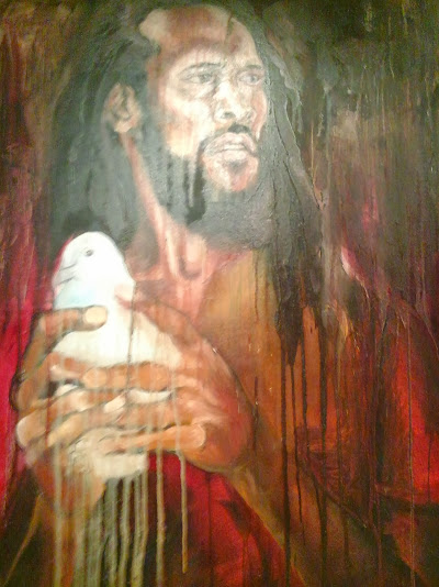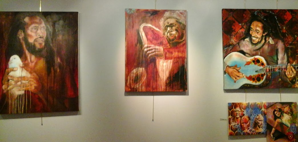 Asher Mains has been painting since he was a young child, and although he is still young, has been exhibiting for 20 years. Bob Marley continues to appear in his work, just because Bob is more than an icon; he is an inspiration. Enjoy this wall of large, emotionally charged musicians.