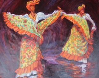 Susan Mains’ Dancing Ladies Series has gotten quite a bit of attention. One has gone to London, another to Barbados, and one to St. Kitts. Not sure whether the 4th one danced off to, but she’s gone. At least four 2015 Regional Calendars will feature Susan’s paintings of the dancing. So happy to share the traditional culture.