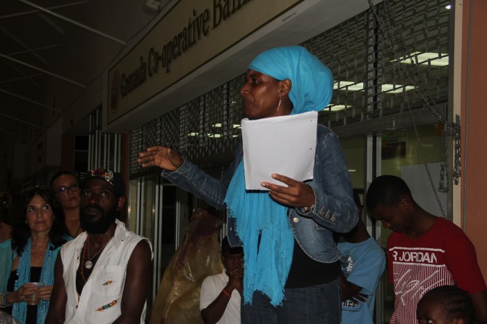 The drumming of Godrey Luke and the children of Ashanti Footprints may have been many’s first encounter with the exhibit and there couldn’t have been anything more appropriate. The sound of the drums were pre-Westindian, the history of the West Indies and the West Indies right now. Godfrey Luke is also a sculptor; his figures made of found objects greet visitors to the gallery and they too span time and space. The combination of materials Godfrey uses span a Grenada (and West Indies) that was, that is, and what may be. Also from Upper St. John, Judy Antoine read a few pieces of the poetry she wrote and despite there being a lot of people, despite it was in a big hallway at Spiceland Mall, Judy Antoine was mighty. Brene Brown says about vulnerability, “Vulnerability sounds like truth and feels like courage. Truth and courage aren’t always comfortable, but they’re never weakness.” Judy Antoine, voiced things in her poems that people only whisper and Judy Antoine was the strongest person in sight.