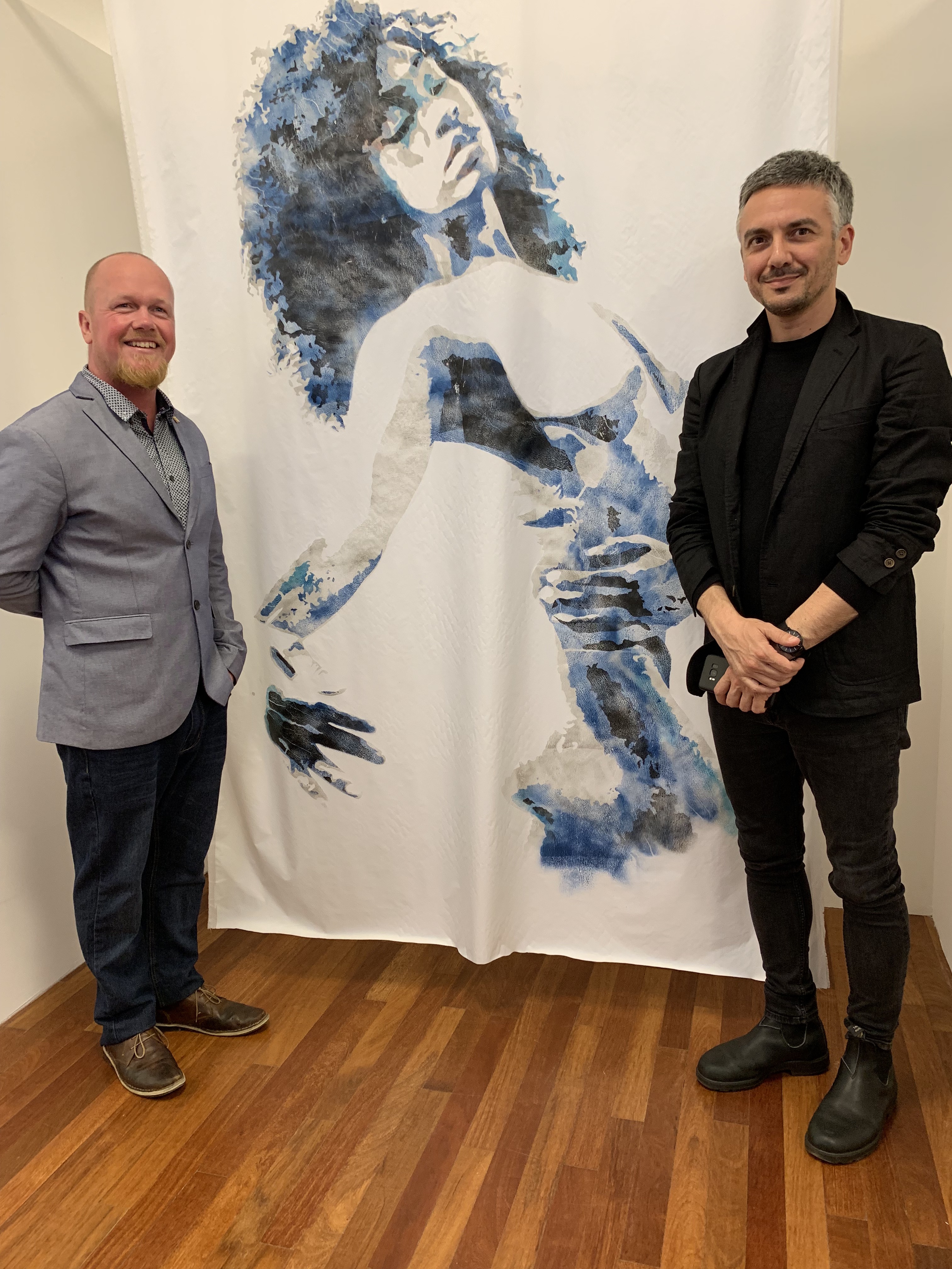Asher Mains with Curator Luca Curci in Venice, Italy at The Contemporary Room