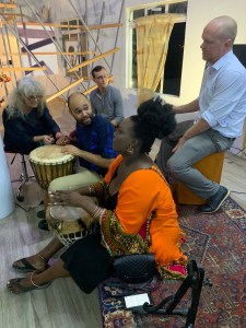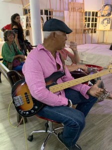 The crowds of art lovers who attended the opening event were treated to a very special vibe of music with the likes of Dexter Yawching, long standing base man, leading a jam session of young, enthusiastic musicians. Their passion was palpable, warm and welcoming. Drummers, a solo pan, and violin by Aixa, had locals and visitors alike on their feet.