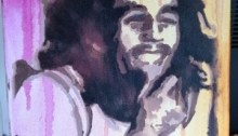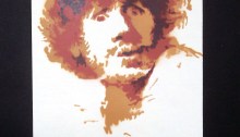 This is a little 8″x10″ 3 layer stencil I did of a Rembrandt Self Portrait Etching. Spray paint on paper by Asher Mains